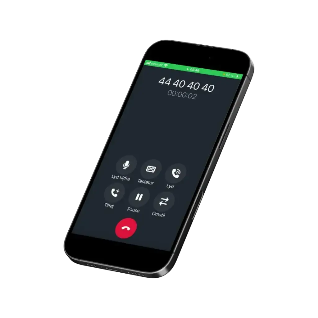Vores løsning inkluderer en mobil app og softphone til desktop. Det betyder, at jeres hovednummer altid er med jer, uanset om I sidder på kontoret, arbejder hjemmefra eller er på kundebesøg.